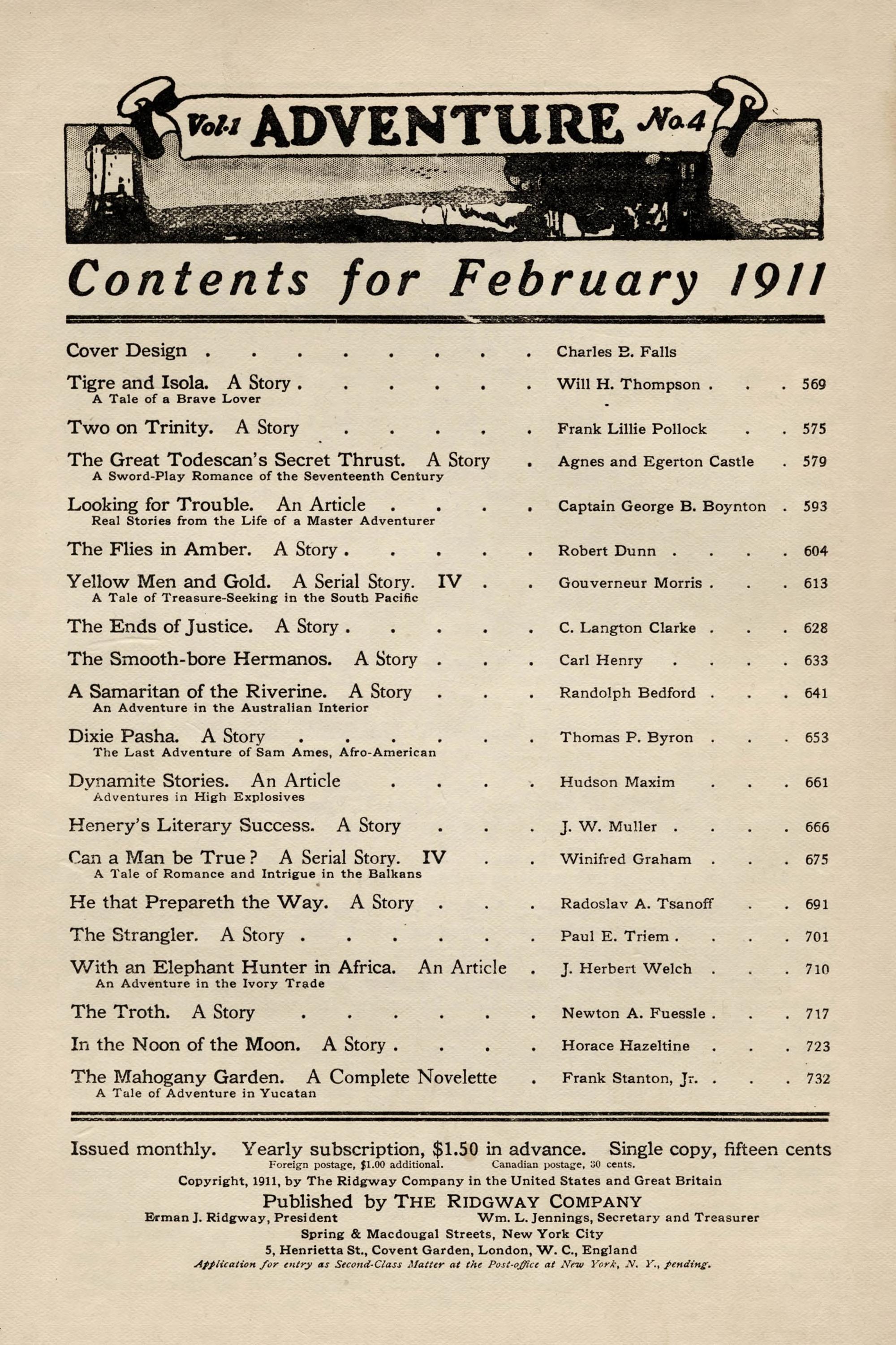 | Yellow Men and Gold. A Serial Story. IV | Gouverneur Morris | 613 |