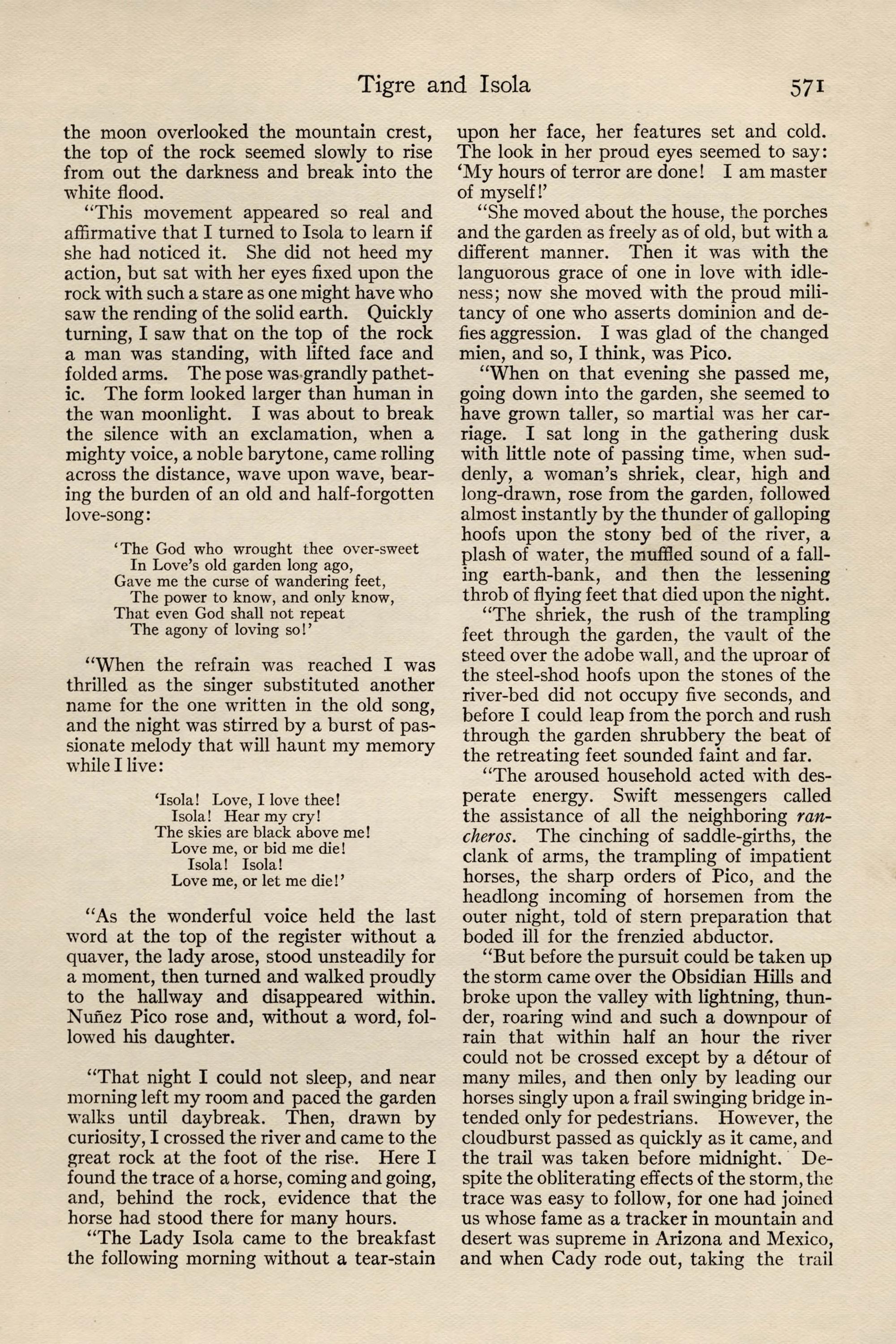 | Tigre and Isola. A Story | Will H. Thompson | 569 |