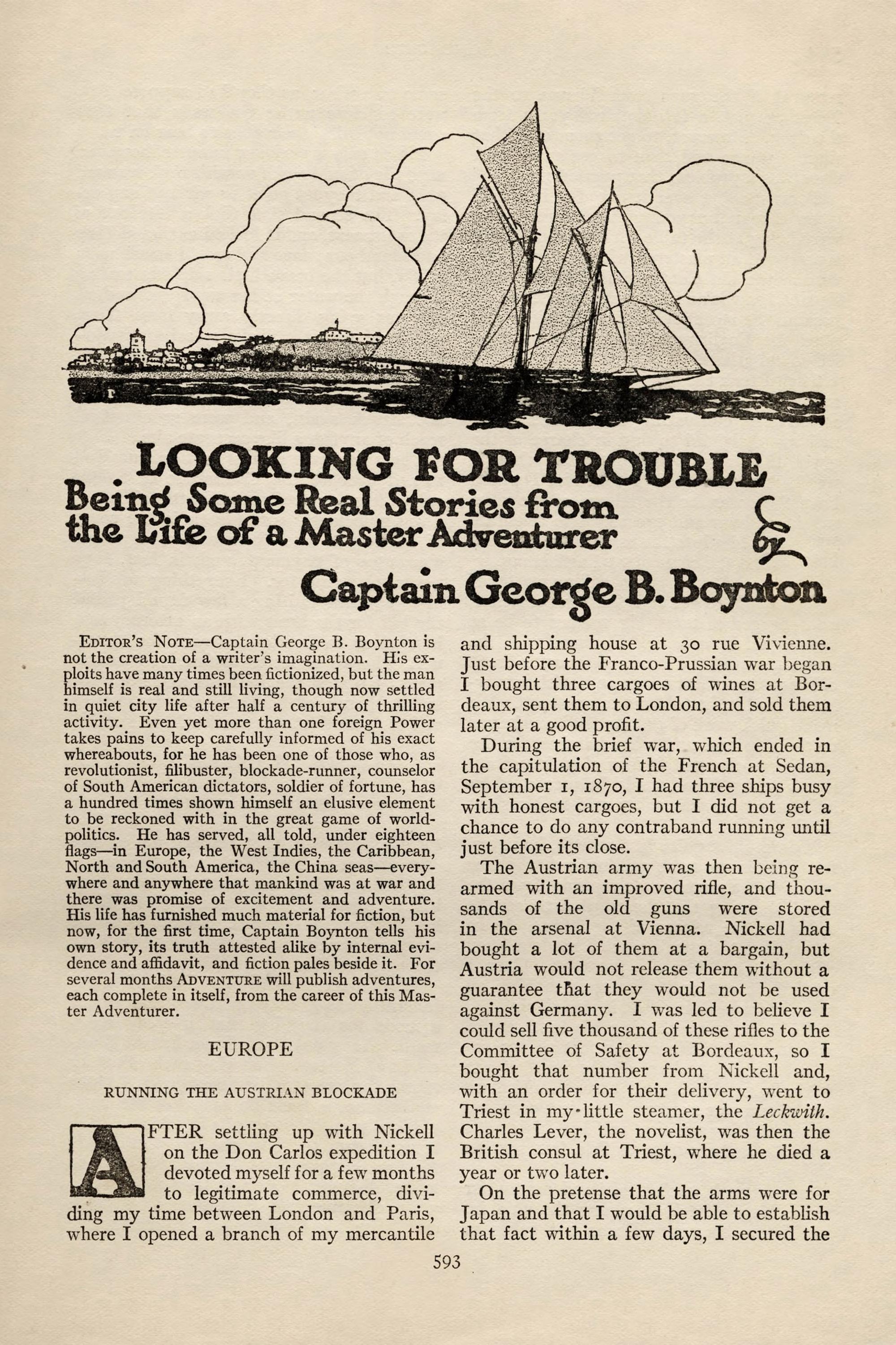 | Looking for Trouble. An Article | Captain George B. Boynton | 593 |