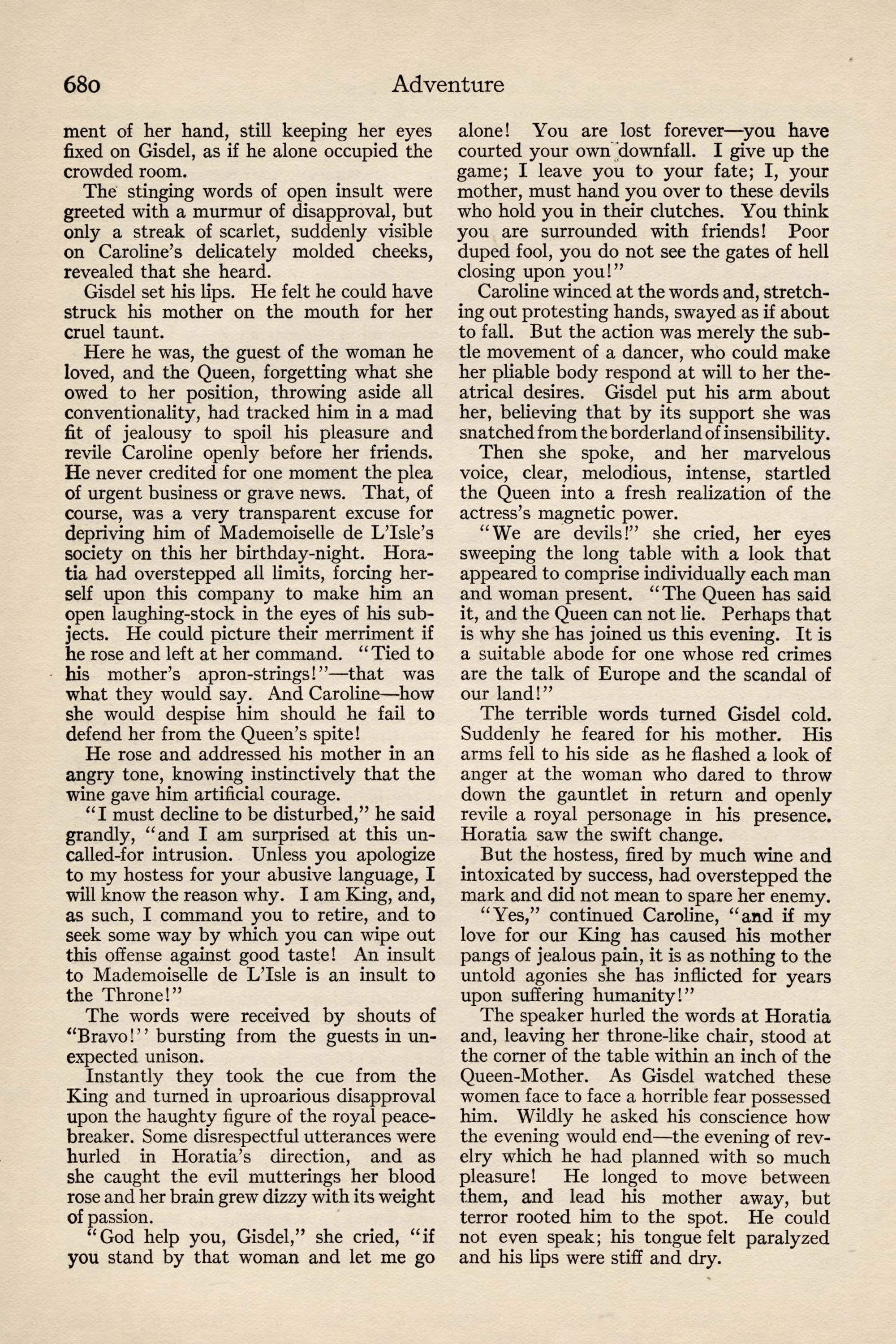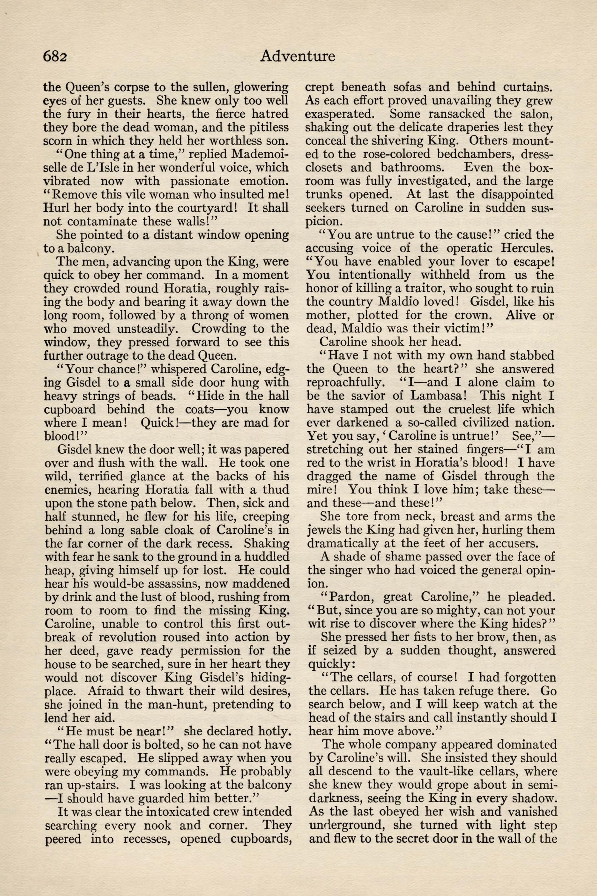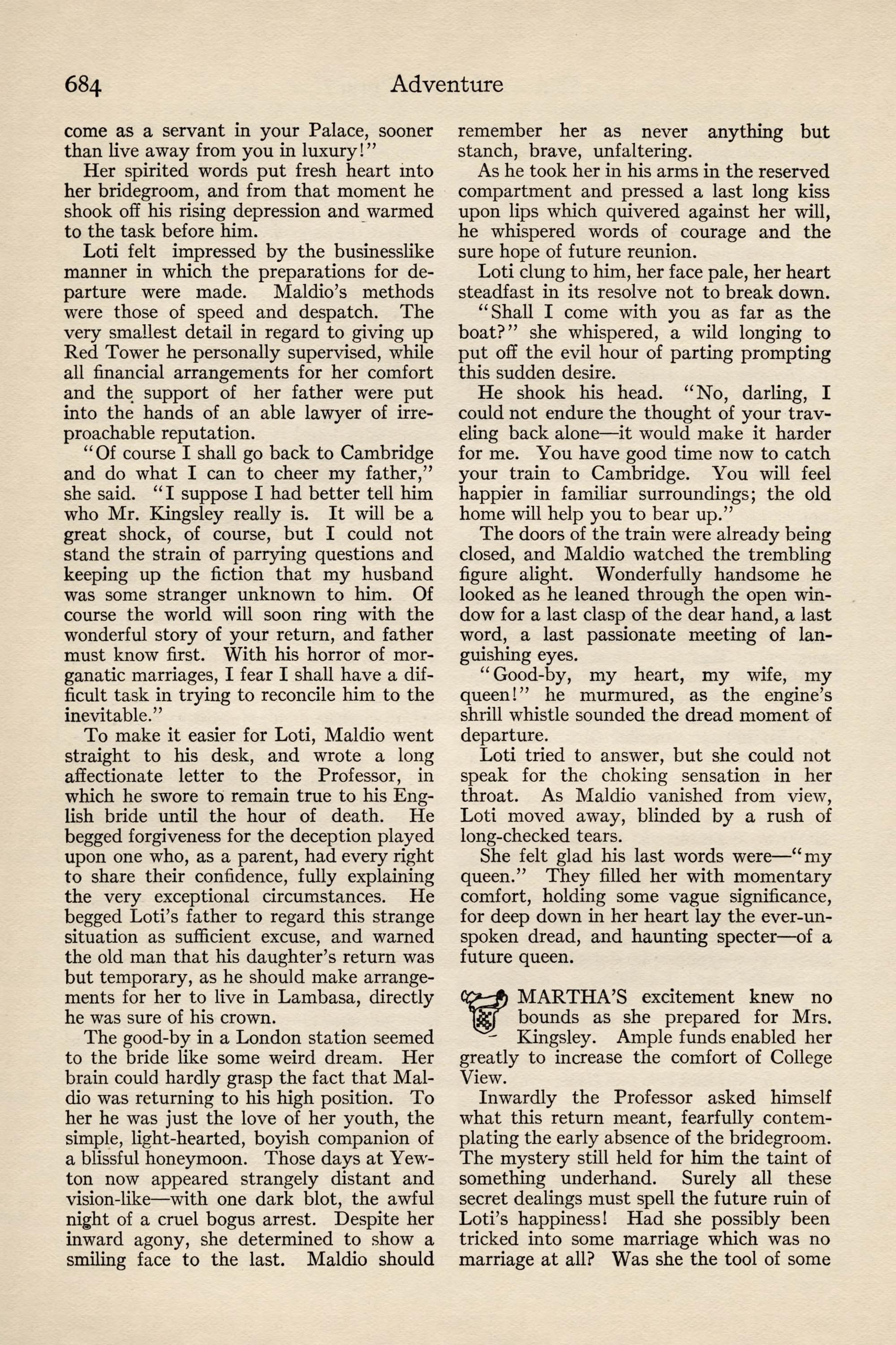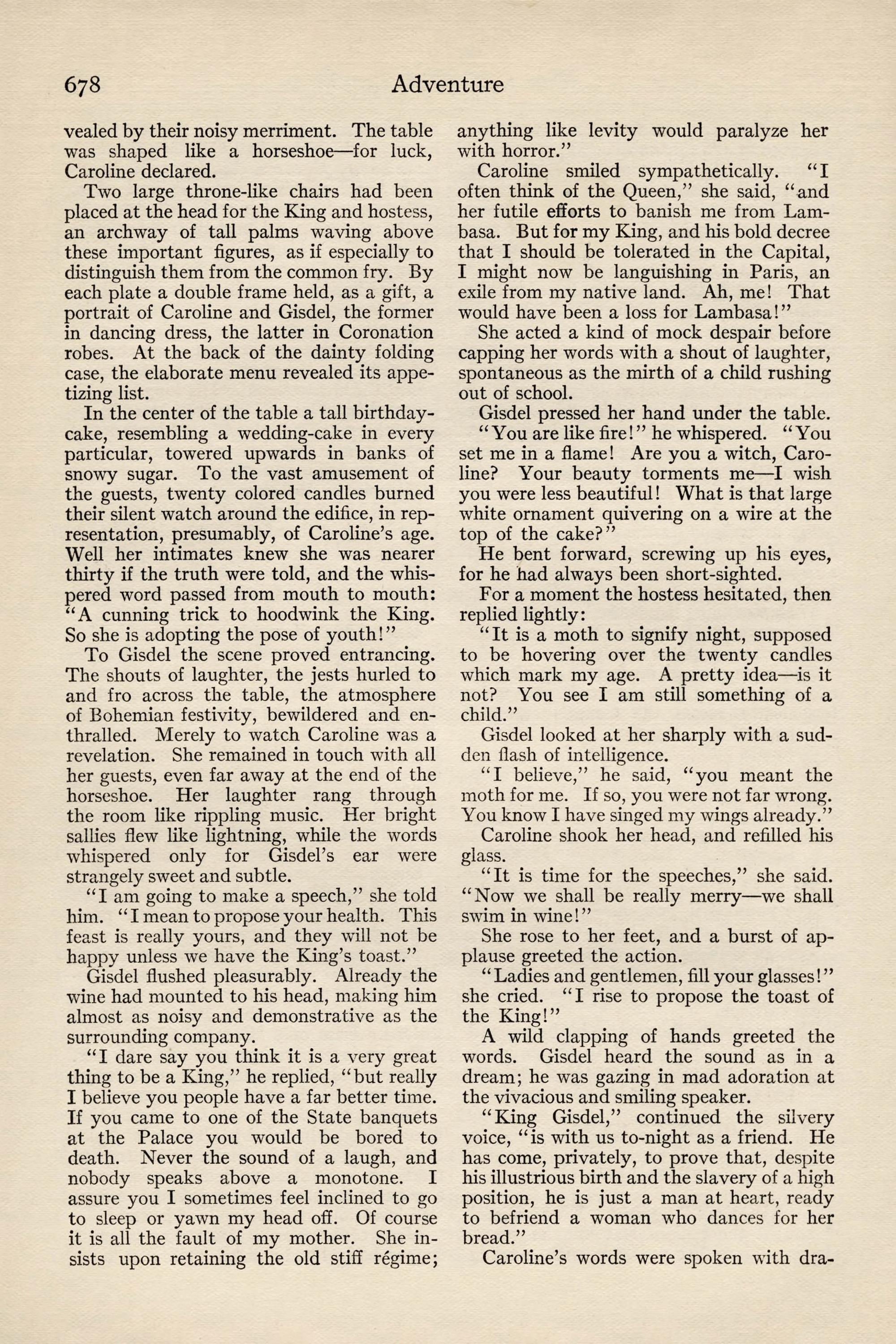 At the time of going to press, the Revolutionaries, doubtless for purposes of their own, have spread abroad a wild report that Maldio the Thinker is yet alive. The coffin in which he was undoubtedly bur- ied has been tampered with, and is now lying empty in the chancel of the Cathedral. Diarmid Bistoff, the Court Physician, has sworn that he himself res- cued the young monarch alive on the eve of his bur- ial, and has revealed a secret passage from the vault to his residence, the Villa Monastero. The people are mad with joy at the possibility of finding the rumor true, though it will never be fully credited until Maldio himself reappears, to quiet the kingdom and remount his throne.