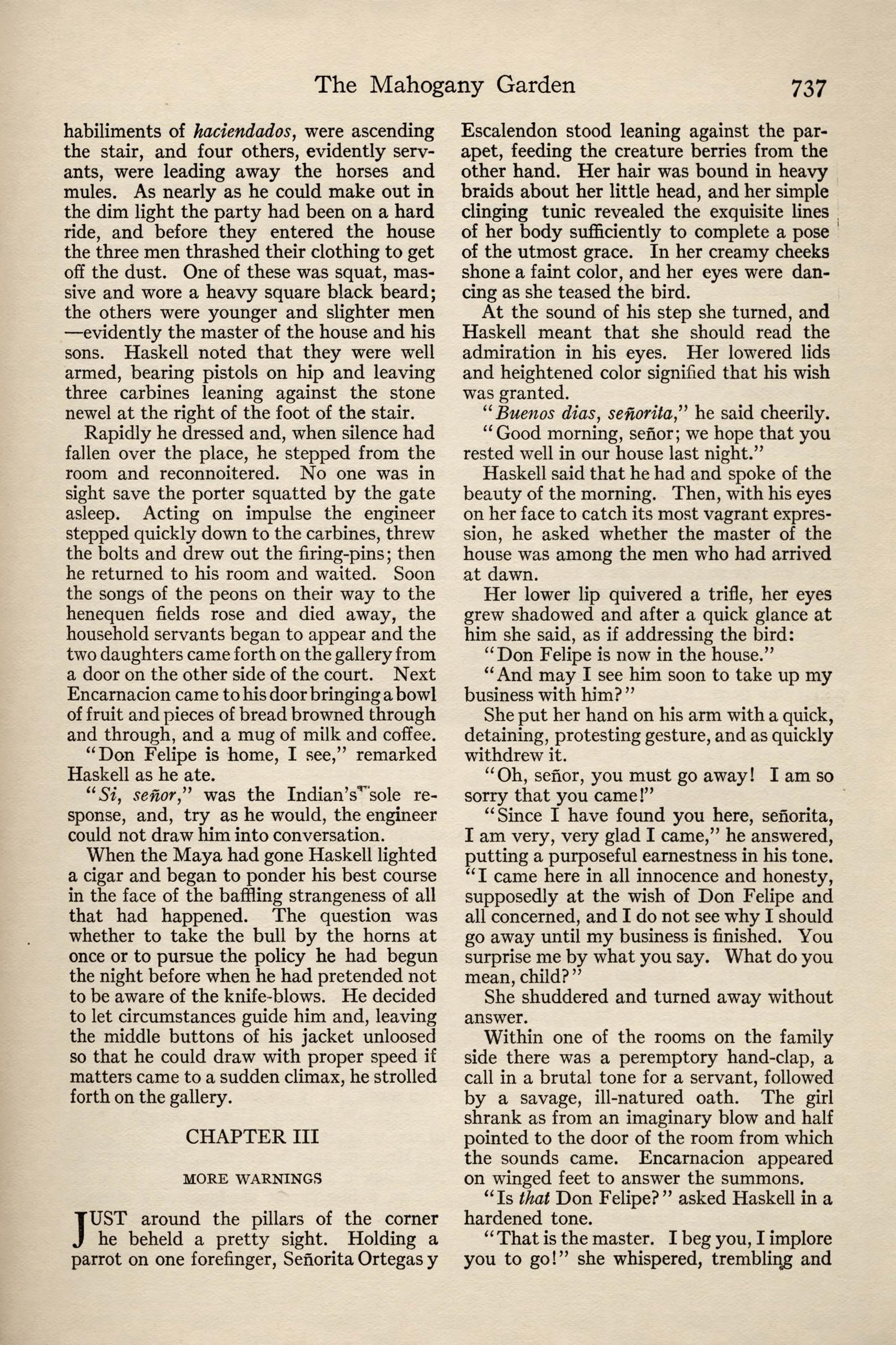 The Senor Haskell:—Do not go. Do not go. I shall never see you again, for you go to die. Emalia.