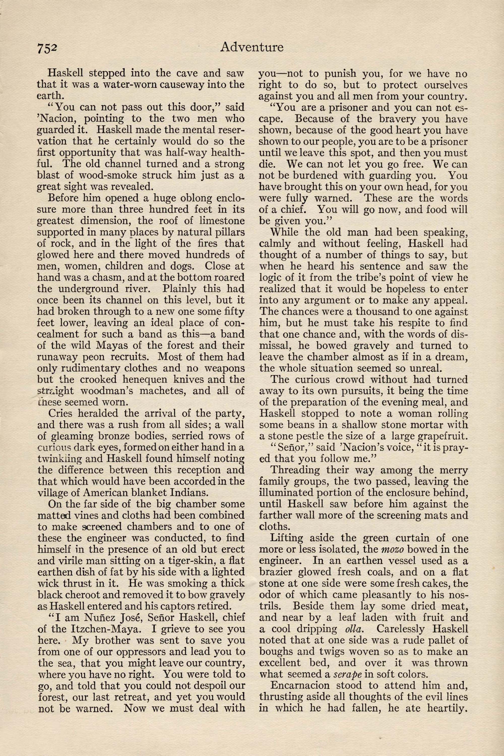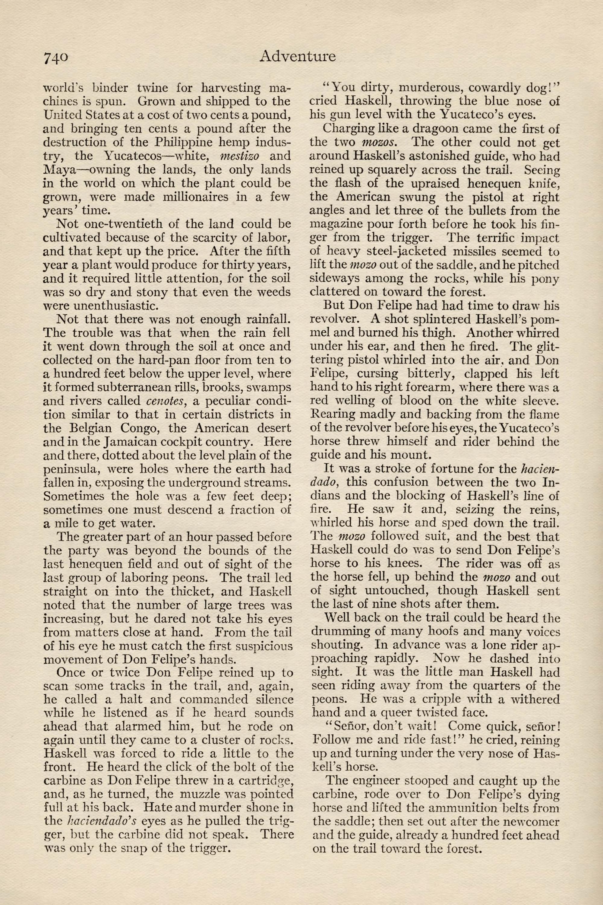 Robert Haskell, Hotel Oxford, Denver, Col. Mclrnery down with typhoid.'Go via Mexico City, Vera Cruz, to Progresso, Yucatan, then in- land to hacienda of Calderon y Ortegas family beyond Valladolid. Instructions going by Ward Line mail. John R. Peters.