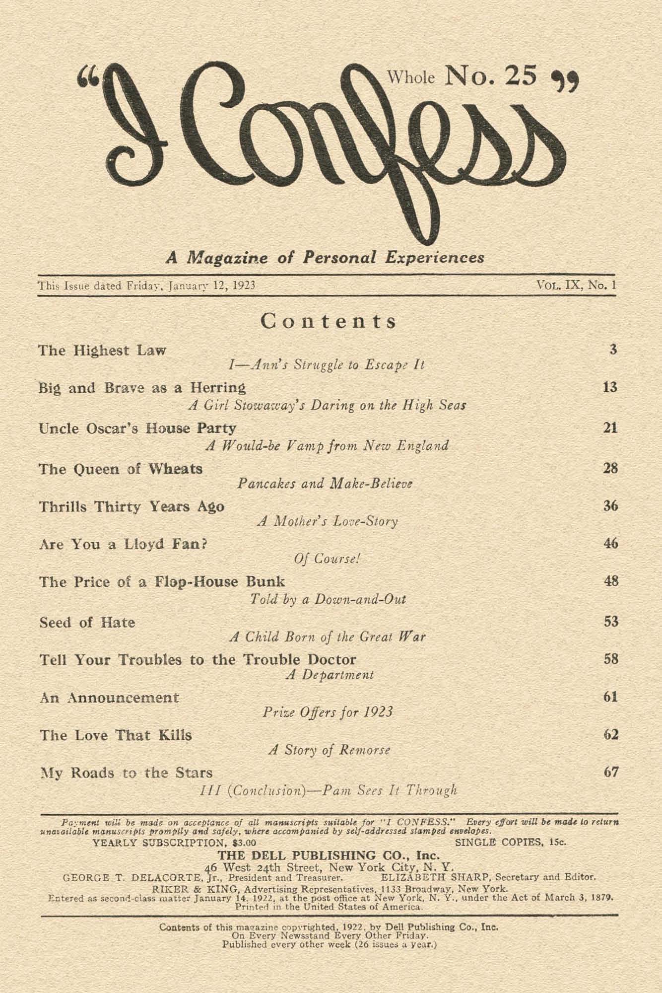 Contents of this magazine copyrighted. 1922. by Dell