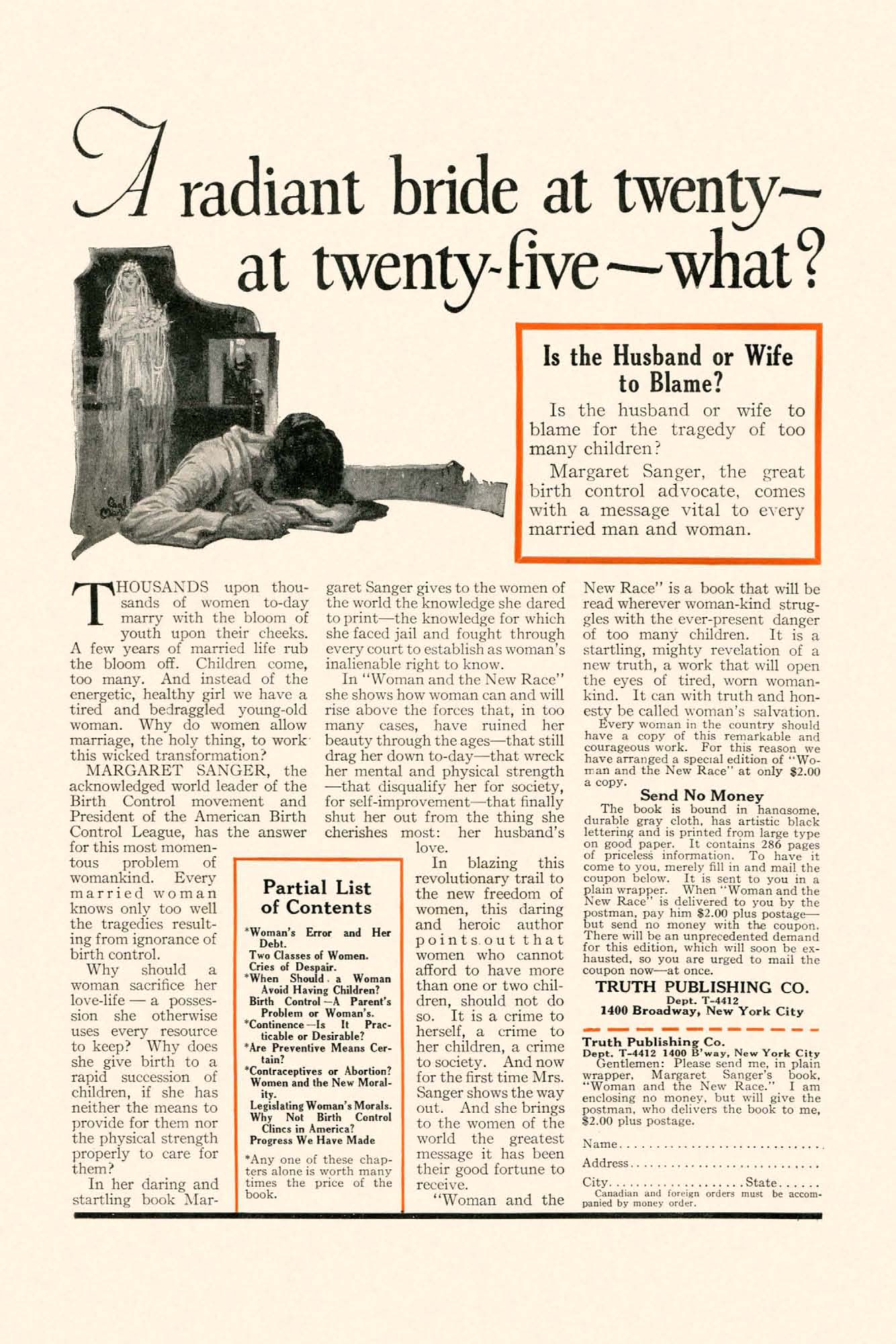 below. It is sent to you in a plain wrapper. When "Woman and the New Race" is delivered to you by the postman, pay him $2.00 plus postage— but send no money with the