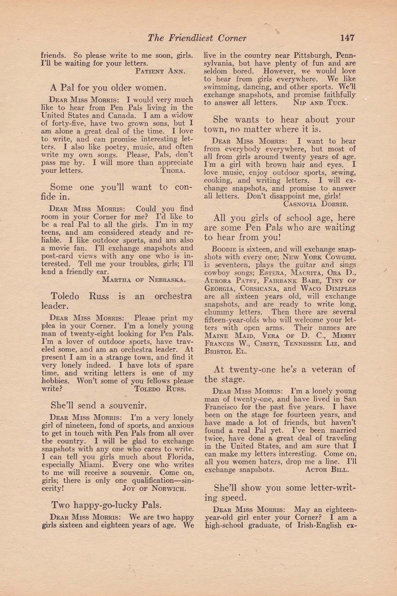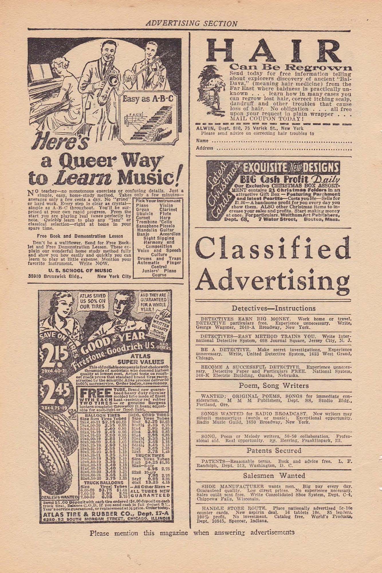 premium or spending money. We are reliable—39th year—Be first. Write for