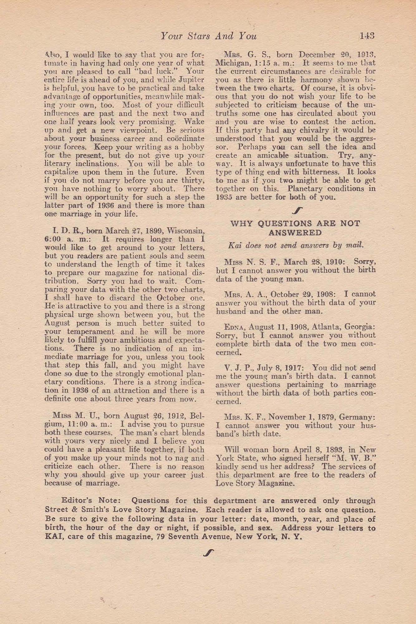 Send Name and Address. -Latest